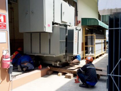 - หม้อแปลง ขนาดไม่เกิน 1,500 kVA (น้ำหนักไม่เกิน 4,500 kg. ใช้เสาคู่ 12 m. ระยะห่างระหว่างเสา 4 m. (ใช้คานยาว 4.60 m.)